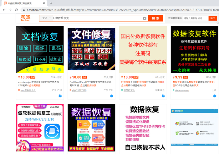 打開淘寶網站,輸入U盤數據修復,有很多專業提供此類服務,直接點擊咨詢就可以,不過這是要付費的。