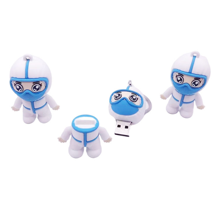 防疫禮品U盤是社區(qū)為了宣傳防疫知識為準(zhǔn)備的禮品,它根據(jù)防疫醫(yī)生的外形開模定制,外形設(shè)計成了卡通人的形象,背后是印上去的我愛中國的宣傳語,這款宣傳U盤一發(fā)出去就受到用戶的好評。