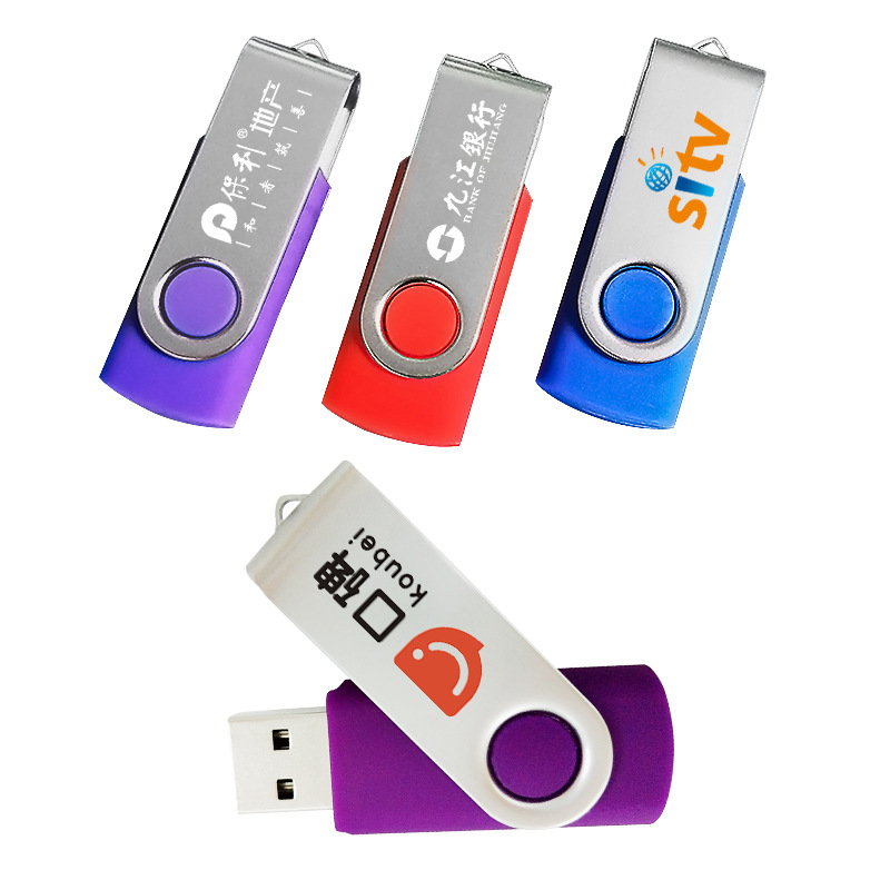 夾子旋轉U盤是我們訂單量排一位的款式,它采用旋轉的設計,免去了拔蓋的麻煩,使用方便,ABS塑膠部分可以定制多種顏色,金色旋轉外殼上可以定制多種工藝的logo,組裝也非常快。