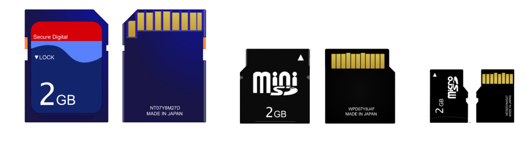 像U盤,SD (安全數字)卡也可移動和可重寫,并使用非易失性閃存。SD 卡有三種形式因素和五個分類。形狀因素為標準尺寸、微型標準尺寸和微型標準尺寸。